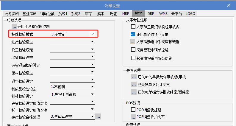 一、要點介紹根據(jù)客戶反饋,國標規(guī)定的允收質(zhì)量水平(AQL)允許輸入向下(↓)或向上(↑)箭頭符號,用以表示樣本等級的浮動方向。這種浮動機制將同步影響樣本等級和樣本數(shù)量的確定,以及對應的接收數(shù)量和拒收數(shù)量。本次修改需更新至2025年6月13號之后的A版。 二、正文內(nèi)容************* 1. 營業(yè)人資料-其他-特殊檢驗模式選擇2、抽檢方案模式或3、不管制。