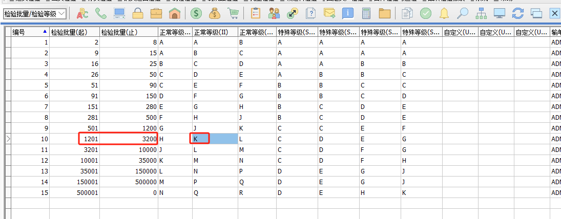 D、根據(jù)等級K和進貨檢驗單的AQLcr 0.01,去【允許質(zhì)量水平】獲取相應的樣品等級和樣品數(shù)量。將樣品等級、樣品數(shù)量、接收數(shù)量、拒收數(shù)據(jù),帶到進貨檢驗單的抽樣信息窗口相應的欄位。 同樣的方法,取到AQLmaj為1.5對應接收數(shù)量Maj、拒收數(shù)量Maj等。