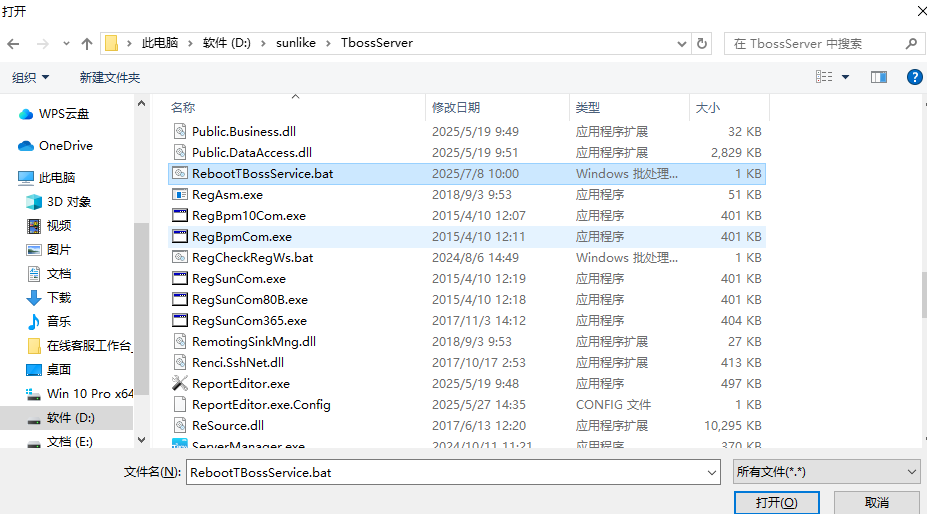 RebootTBossService.bat 文件里需要修改為ERP的TBOSS TbossGate.exe文件的路徑,然后把RebootTBossService.bat文件放到TbossServer文件夾底下,再創(chuàng)建任務計劃定時執(zhí)行該bat文件。