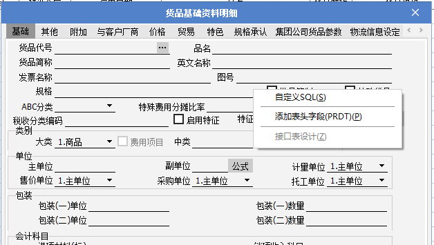 一、要點介紹1、在使用SunLike系統時,當有非標的功能,希望可以在標準單據保存、修改、刪除、終審、或終審反審核的節點時,能觸發寫一些非標的處理,且該處理與觸發節點包在一個事務里;如希望單據保存時,自動在A表插入一筆記錄,如單據保存不成功,則不插入。 2、當SunLike與PLUS系統共用時,希望在SunLike生成單據時,能自動觸發調用WMS的接口,產生WMS的相關單據信息,如出庫退回單,自動產生PLUS系統的【出庫退回通知單】;(此需求需要PLUS支持對應功能才可使用)。 本功能相當于提供觸發器的接口,需要更新到2025-7-23號之后的365AB版。 二、正文內容************* 1.基礎資料和單據表頭都可以設置自定義SQL,按鼠標右鍵,選擇自定義SQL即可打開設置窗口。
