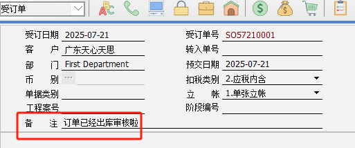 范例3、設置出庫單終審后,回寫受訂單表頭的備注為“訂單已經出庫審核”。注意:終審、終審反審核時,要固定用BIL_ID\BIL_NO。設置如下圖: