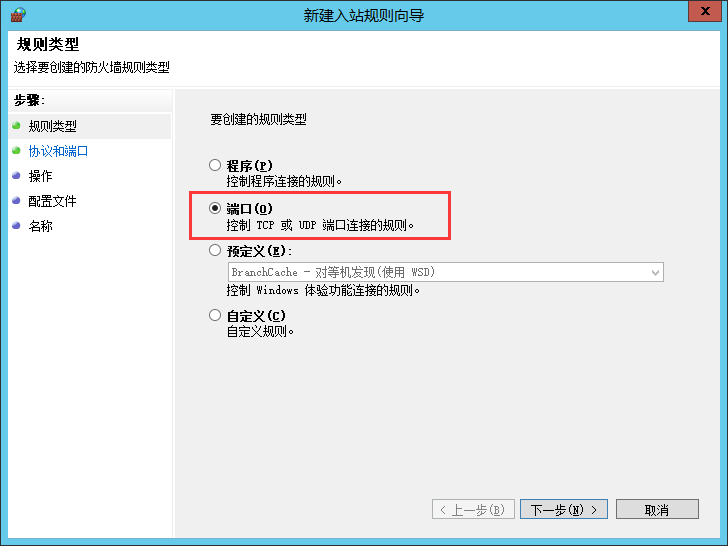 2.2、防火墻配置 在云主機防火墻中,放開55491、23788、23798 這三個端口的外網訪問 進入云主機控制面板->Windows 防火墻->高級設置,新建入站規則
