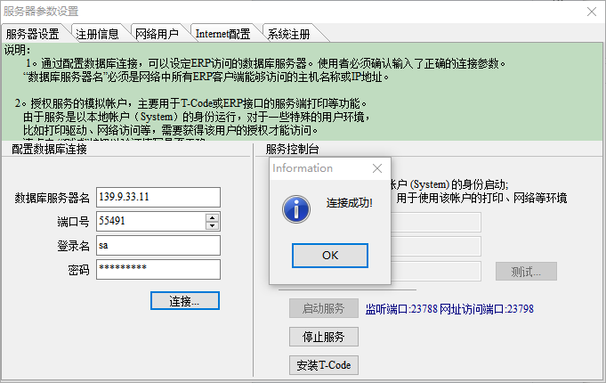 運行ERP時,依次錄入云主機的IP地址、端口號。密碼是云主機SQLServer的密碼。如果不想重裝客戶端ERP,可在SvrConf.exe中設置,注意要保證目前的ERP版本與云主機的一致。點擊確認將成功連接到云主機,即可建立加密通道,快速接入云端ERP系統。
